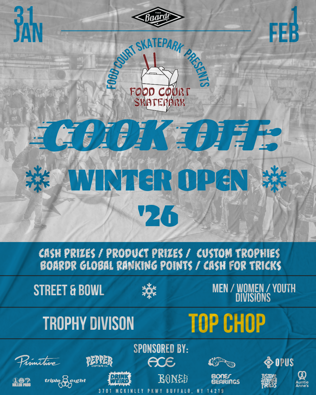 As always... all participants will be competing for valuable Boardr Global Ranking points, prize packs from our sponsors. Competitors in TOP CHOP will still be gunning for cold hard cash and glory!